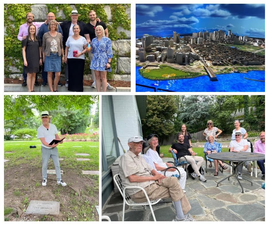 Boston har mye å tilby – og mens gjengen lader opp til flere dager med kompetanseutveksling ved ulike atferdsanalytiske tjenesteytere har de rukket å besøke ulike steder i Boston, samt et kort besøk hos selveste datteren til Skinner! Julie og Ernst Vargas har virkelig engasjert generasjoner med atferdsanalytikere, og IAA fikk en mulighet til å si dette til dem ansikt til ansikt. Legg gjerne merke til at Julie har en caps fra IAA, som hun fikk fra Dag Gladmann Sørheim for flere år siden! Hun hadde den fremdeles! Skinners grav ble også ilagt et besøk.